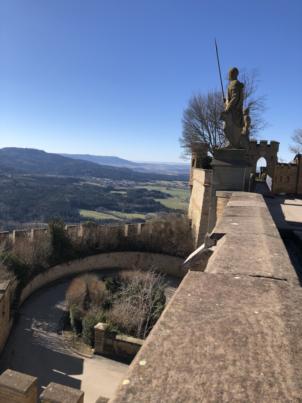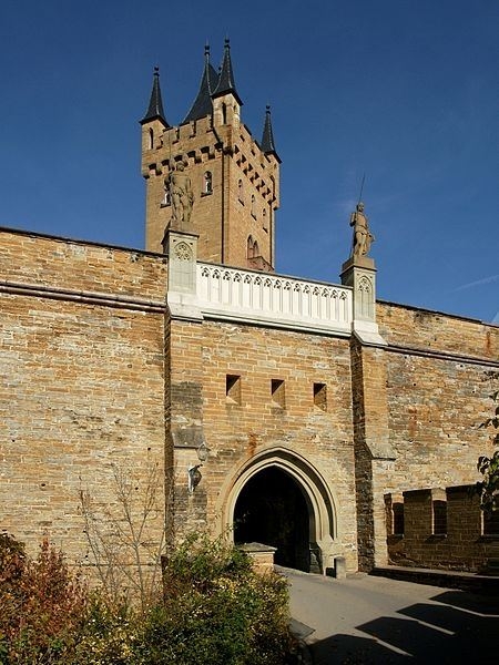 Vorwerk der Hohenzollernburg / Allegorie. [Vielleicht (vielen) eher unscheinbar( verborgen)er Rampe vergitterter