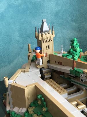 des Hochschlosses aus Noppensteinen von Blue Brixx
