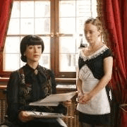 Burgführerin mit jederzeit um Rat befragbarem Todesvogel auf der/jedes Menschen Schulter.