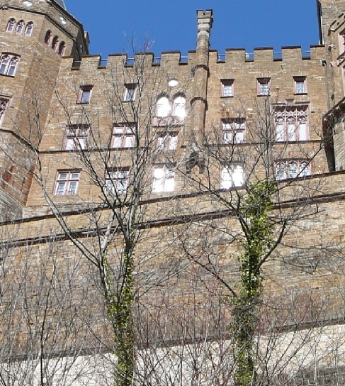 Kaiserbau (der Andergeit/en) im Bild rechts an schrägen Erfahrungsflügel anschließend mit ganzem Michaelsfkügel vom Burghof des hohenzollerischen Hochschlosses aus gesehen.