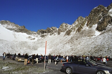 Die bei weitem nicht allein ihrer Größe wegen angenehme Gruppe erklomm in ihren 24 Fahrzeugen am 9. September 2006 zunächst Teile der Strecke der Silvretta-Classic über die Hochalpenstraße, fuhr dann eine feine gut verpflegte Runde durch Österreichs Bergwelt: Arlbergpass, Flexenpass, Hochtannbergpass und kehrte schließlich mit einer willkommenen Fusswanderung durch andere Serpentinen des Montafon zum Abendessen in der rustikalen Berghütte des Hotels ein. |