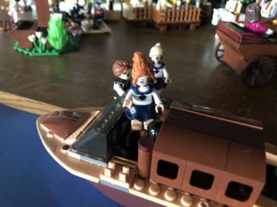Spätestens sein Entwurf des ‘Flying Lobster’-Restaurants kann, zumal in ordentlicher Klemmsteine-Qualität ausgeführt, das Erwartungsniveu of AFOBS (BlueBrixx) erheblich steigern!  [Auf dem Foto der Palazzo links Ca‘ Fenice und ganz rechts neben dem ‚doppelwandigen‘ Meeresfrüchte-Restaurant eine Realisierung des Chinesen ebenfalls modularen bzw. aufklappbaren Antique Shop Entwurfs] – Und diese Begeisterung obwohl manche pseudo-Minifiguren-maßstäbliche ‚Breiten‘ und Hohen bekanntlich …; und obwohl, seine Treppen hier auch sonst (ähnlich der weitaus meisten Noppensteinmodellideale – ‚entschärftes‘:) ‚nicht einmal‘ jene des Maritimen Museums (2017), up to ‘The Opara‘ (2025 – by Pantasy),‚erreichen‘ – ordentlich ‚bespielbar‘. Also: Mit erheblichem ‚Bau-Spaß‘ selbst jener,  die eher der Zusammensetzungsnotwendigkeiten empfinden. [Ach so, nein: Anima liebt geordnete Übersicht / Verbalsprache benötigt bis simuliert sie gar]